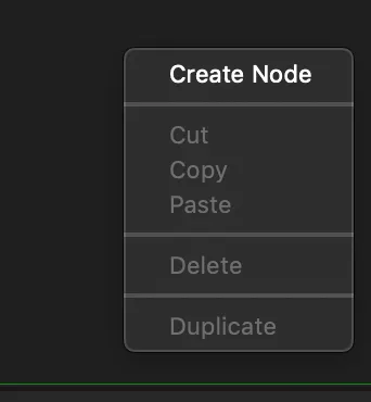 次にGraphView上にノードを追加するための導線の実装について説明します。エディタ拡張としては、ウィンドウ上のUI操作でノードを追加したいところです。そこで、本記事ではGraphViewの機能を活用して、右クリックからメニューを開いてノードを追加するまでの流れを紹介します。GraphView上で右クリックをしてみると、次の画像のようなメニューが表示されます。これがあらかじめGraphViewで用意されている機能になります。