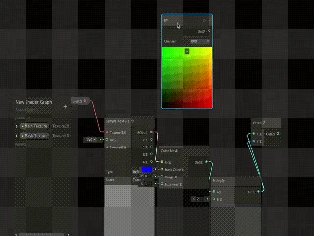 このgifはUnityの提供するノードベースの機能であるShader Graphを使っている様子です。シェーダーに必要なパラメータやロジックをノード同士をつなげて設定しているのが分かるかと思います。UnityではShader Graphの他にもVFX Graphというノードベースでエフェクトが作成できる新機能をリリースしています。ノードベースのエディタはロジックをGUIで直感的に捉えることが可能で、MayaやBlender、HoudiniといったDCCツールにノードベースのものも多いことからクリエイターとの親和性も高く、開発全体の効率化を行うツールを作る上では有用な選択肢の一つです。