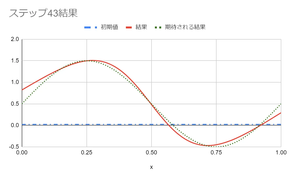 このように、ループごとに誤差が減っていっているのが確認できます。