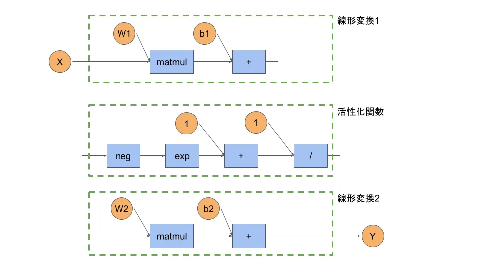 ステップ43では以下のような2層のニューラルネットワークを作ります。