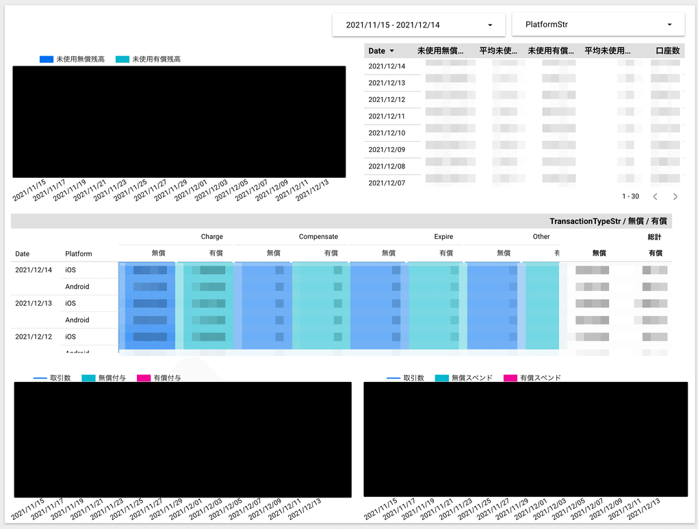 近年流行りのノーコードに乗っかっているわけではないのですが、QuaPayの管理画面はGoogleデータポータルを利用しているためノーコードで開発されています。データポータルを採用した理由は2つあります。1つはそもそも基盤チームで管理画面を開発するリソースがなかったという懐事情に依るところです。もう1つは管理画面を開発したとして、そのアプリを提供してゲーム側で動かしてもらうのか、基盤側で管理画面だけを運用するのか、分散マイクロサービスがゆえに運用コストを考慮すると厳しいと感じたからです。幸いにもDatastudioがSpannerと接続してクエリ集計が可能だったため、これを利用することでこの問題を同時に解決できたので、結果的にはベストな着地点だったと思います。最大の難点がダッシュボードのコード管理が一切できないということぐらいです。