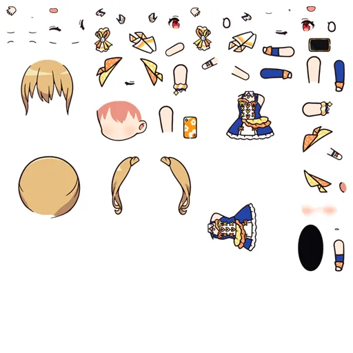 実際に千紗のAtlasテクスチャを見てみると、左右非対称のパーツのみ複数のパーツが用意されていることが分かります。