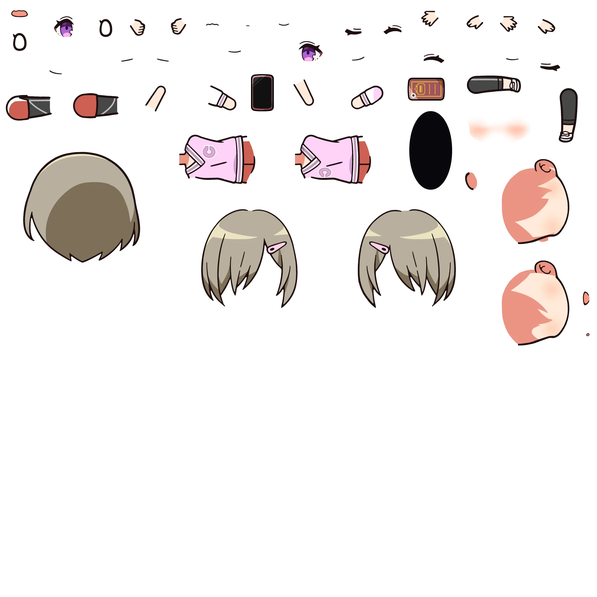 例えば、今回の千紗のデザインだと、後ろ髪は反転が問題ないので1つだけパーツを用意します。