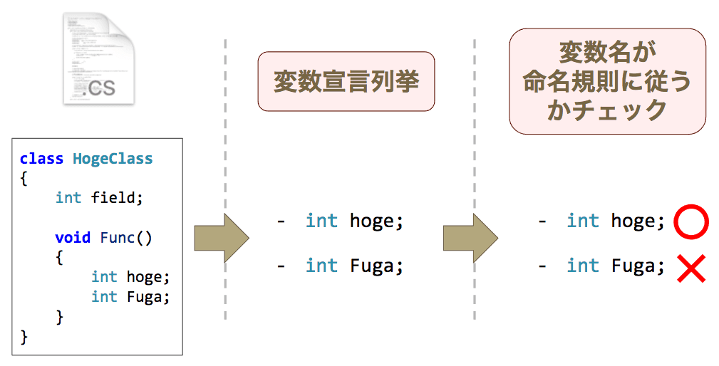 構文解析など、コードを実行せずに行う検証を静的解析と呼びます。 以上から、静的解析の力を用いて、コーディング規約チェッカーを作ることにしました。