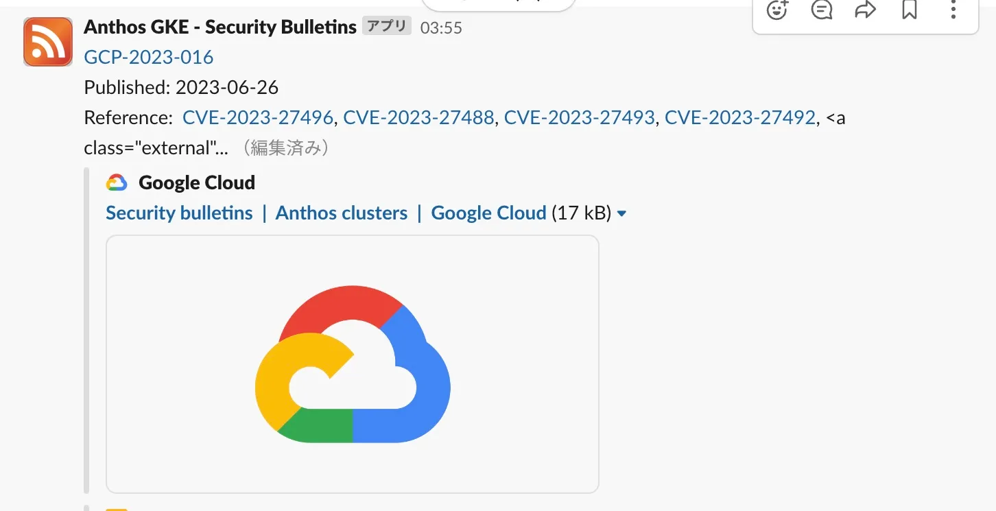 公式でセキュリティアップグレードが発生した時に、下記の画像のようにSlackに投稿させるようにしました。