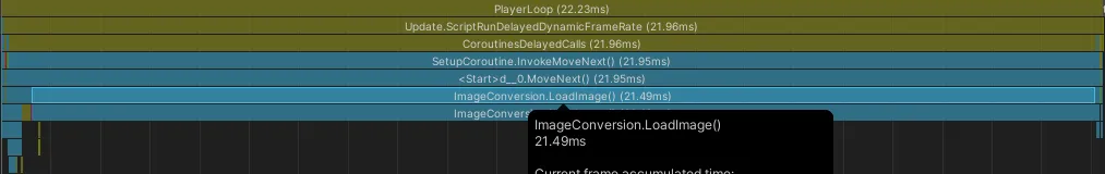 Unityプロジェクトの外にある画像ファイルをテクスチャとしてロードするため、Texture2D.LoadImageを使う必要がありますが、この関数がボトルネックでした。 理由としてLoadImage自体が重たいと言うのもありますが、この関数はメインスイレッドでしか動作せず複数スレッドを立ち上げる事が出来ませんでした。