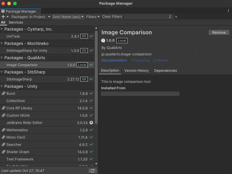 今回制作したツールはゲームのプロジェクト仕様に依存せず、そのゲームの動画(テクスチャの連番)さえあれば使用できる汎用的なものです。 そこでUnityのカスタムパッケージという機能を使用し、QualiArts内で汎用的に使えるツールとして作成することができました。