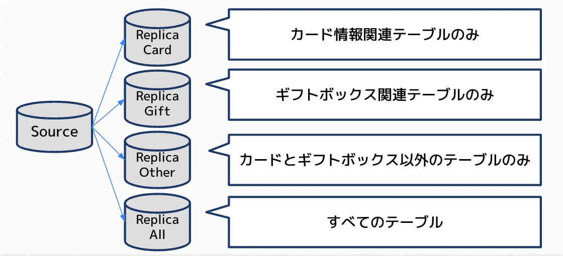 Cardグループにはカード情報関連のテーブルのみレプリケートし、
