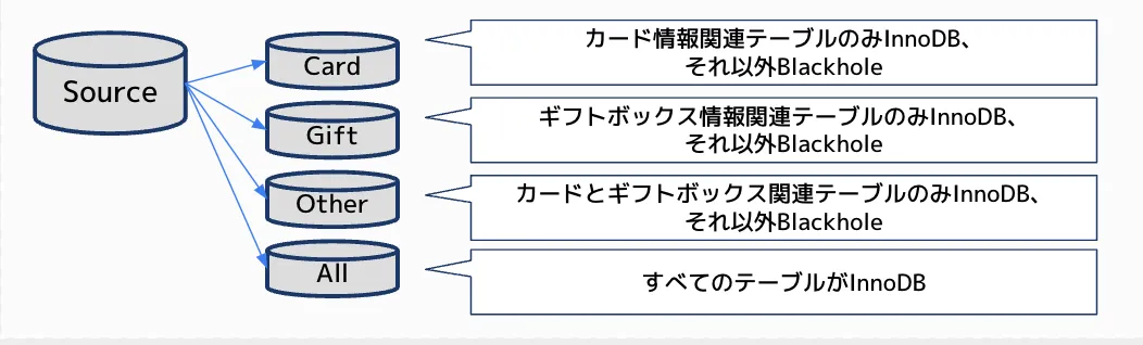 そこで採用したのがBlackhole Storage Engineを利用した変則レプリケーションです。