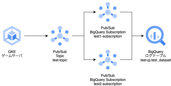 ただし、1つのサブスクリプションにつき1つのテーブルにしかデータを送信できないため、送信するログテーブルの分だけサブスクリプションを生成する必要があります。 今回は、実際にTerraformを使用したログインフラの構築例と、データを送信して正常にBigQueryに書き込まれ、そのデータを取得するまでの一連の流れを紹介します。